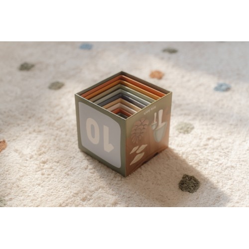 S temi ljubkimi kockami se bodo otroci lahko skozi igro učili šteti do 10. Kocke vsebujejo čudovite ilustracije iz zbirke Forest Friends, z motivom gozdnih prijateljev. Kocke narejene iz trdega kartona se lahko zložijo po velikosti druga na drugo ali druga poleg druge. Manjše kocke se lahko postavijo v večje in sobica je že pospravljena :). Najmanjša kocka meri 5 cm, največja pa 14 cm.