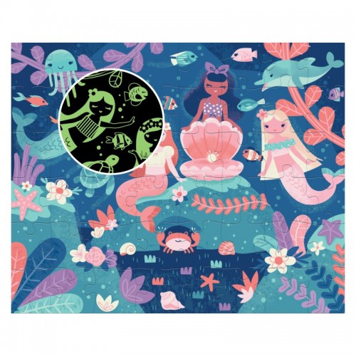 Fantastična 48 delna sestavljanka, ki sveti v temi, bo popeljala vaše malčke v čudovit podvodni svet morskih deklic.