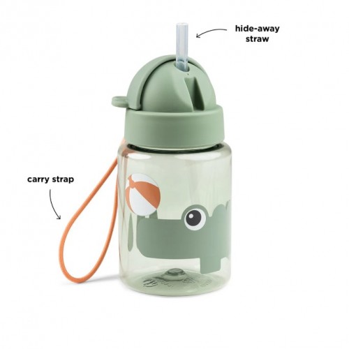 Prikupna steklenička Playground blagovne znamke Done by Deer bo zagotovila, da bo imel malček pijačo vedno pri roki. Steklenička ma zložljivo slamico, ki se prekrije s pokrovčkom in s tem prepreči polivanje. Pokrovček ima praktičen ročaj, ki bo omogočal malčkom enostavno nošenje in odpiranje. Je idealne mere, za majhne nahrbtnike in bo z ljubkim motivom vedno navdušila vašega malčka.