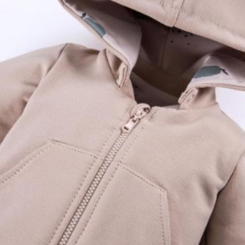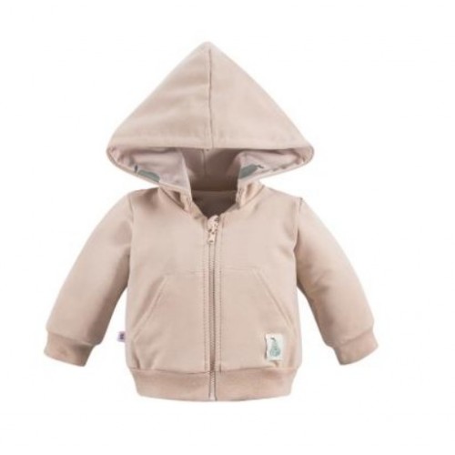 Mehka in udobna otroška jopica s snemljivo kapuco v bež barvi.