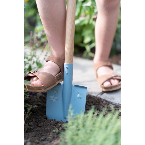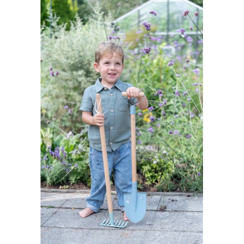 Kovinska lopata z lesenim ročajem je ravno prave velikosti za majhne roke vašega malčka. S čudovito poslikano lopato se bo malček lahko igral v peskovniku ali vam bo pomagal na vrtu.