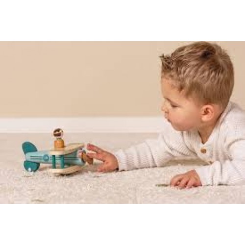 Ste pripravljeni na vzlet? Glavni pilot bo vsak trenutek zagnal motor in ko se bo zavrtel propeler, se dogodivščina lahko prične. Gladko vrteča se kolesa brez napora drsijo po tleh in raziskuje nove neodkrite dežele. Odstranljiva figura pilota je združljiva z ostalimi igračami blagovne znamke Little Dutch. Naj domišljija vašega otroka ponese do novih višin s tem čudovito izdelanim lesenim letalom.