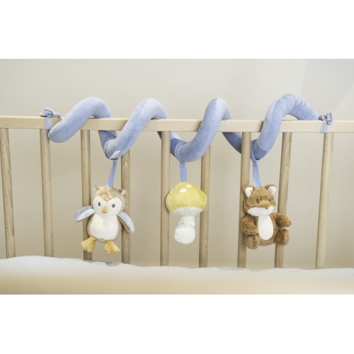 Mali prstki bodo lahko neutrudno raziskovali različne materiale na ljubkih igračkah na spirali, ki jo lahko enostavno privežete na stajico, lupinico ali posteljico. Mehka lisička, gobica in sovica bodo vašega malčka razveselili z nežnimi zvoki.