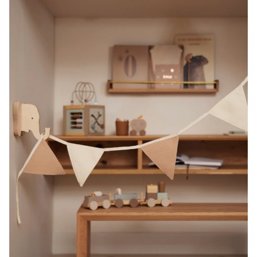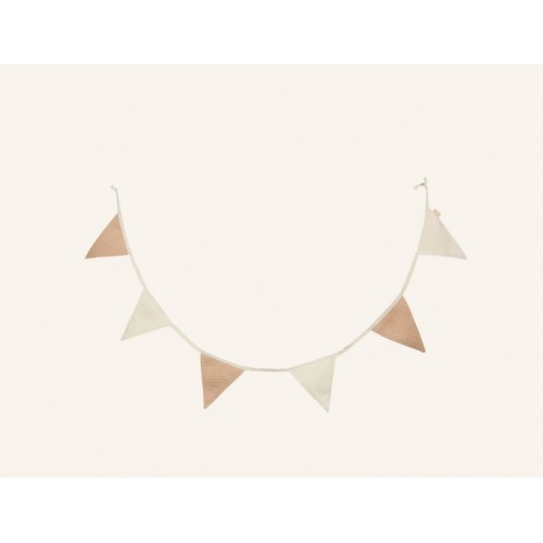 Okrasne zastavice v nevtralnih barvah za popestritev sobice ali za rojstnodnevno dekoracijo. Navrvici je 6 zastavic.