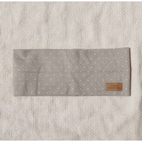 Otroški naglavni trak iz kvalitetnega bombaža v bež barvi s pikicami bo ščitil ušeska vašega malčka/malčice pred mrazom in vetrom.