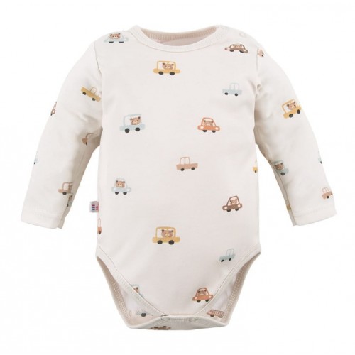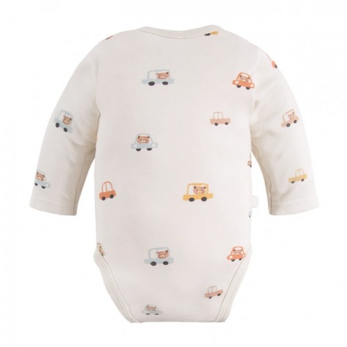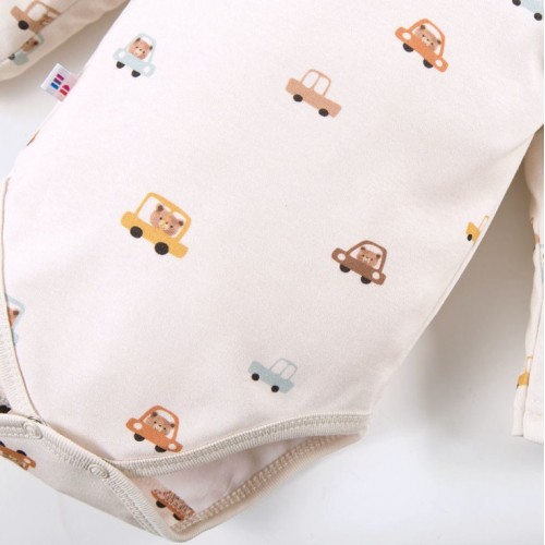 Mehek in udoben bodi v naravnih barvah s potiskom avtomobilčkov.