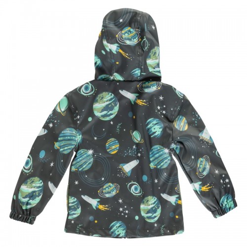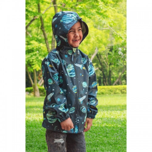 Posebne lastnosti: Jakna je odlična za veter, dež in hladno vreme. V notranjosti je obložena z udobnim bombažnim materialom. Mehka zunanjost pa zagotavlja vašemu otroku svobodo in prožnost za igranje, medtem ko je jakna še vedno popolnoma vodoodporna, zato otroke ohranja suhe in tople. Široka zadrga in kapuca še dodatno ščitita malčke pred dežjem.