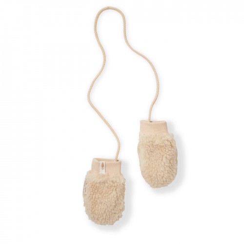 Medtem ko rebrasti patent zagotavlja, da rokavice ostanejo na svojem mestu, vrvica za rokavičke preprečuje, da bi se izgubili. Zaradi plišastega blaga in nežne peščene barve so te otroške rokavičke še posebej ljubke. Na voljo v velikosti 1 in velikosti 2.