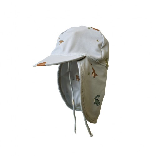 Prikupen klobuček z UV zaščito bo ščitil vašega malčka pred vročimi sončnimi žarki. Klobuček v svetlo modri barvi z motivom dinozavrov ima podaljšan zadnji del, tako da je poleg glave zaščiten tudi vrat.