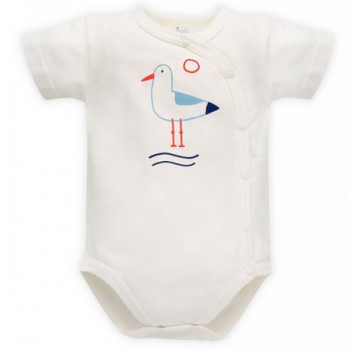 Udoben otroški bodi na preklop Free soul s kratkimi rokavi v beli barvi ter potiskom galeba.