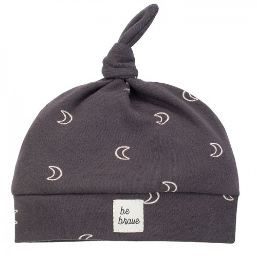 Mehka, udobna otroška kapa Dremer v temno sivi barvi s potiskom lunic.