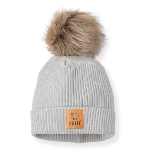 Puffi - Otroška kapa Rebrast pliš s cofom Mint