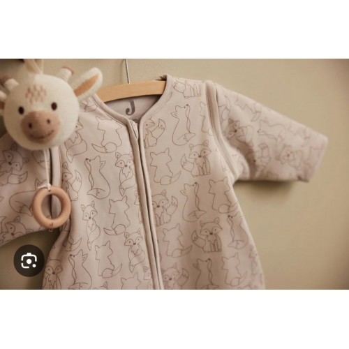 Spalna vreča s snemljivimi rokavi Fox Nougat, v bež barvi z nežnim motivom lisičk, je izjemno mehka in zelo udobna za spanje.