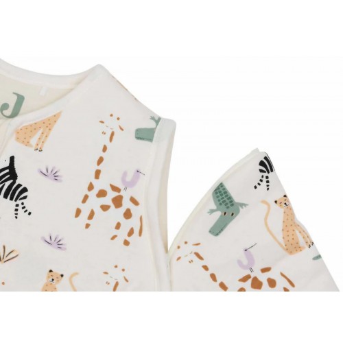 Spalna vreča s snemljivimi rokavi Jungle Jambo z zabavnim motivom simpatičnih afriških živali, je izjemno mehka in zelo udobna za spanje.